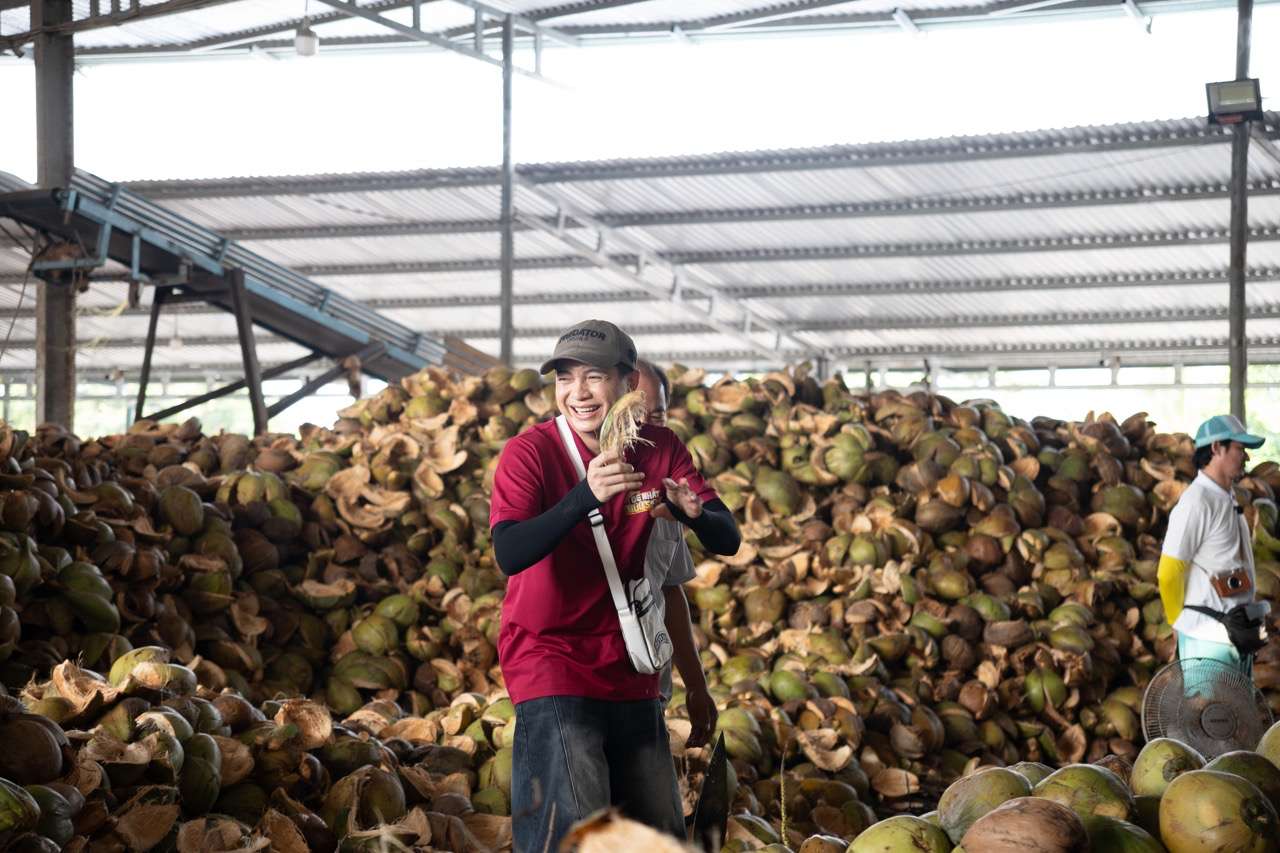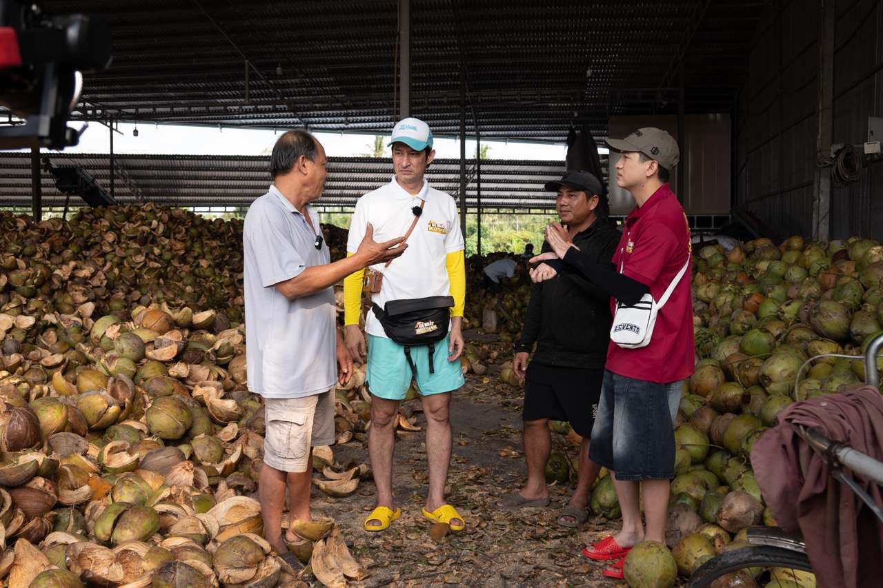 The program pace continued to be accelerated when guest Le Nam "awaked up" the whole family from 4:30 am to continue looking for work. A group followed Huy Khanh to coconut processing facilities, trying his hand at many different stages. Although "grinding" continuously, sometimes the result was only converted to tens of thousands of dong, even considered a rare "cash fee" for artists. However, luck smiled when Huy Khanh was unexpectedly generously "given lucky money" by the facility owner, creating a moment of both joy and warmth.