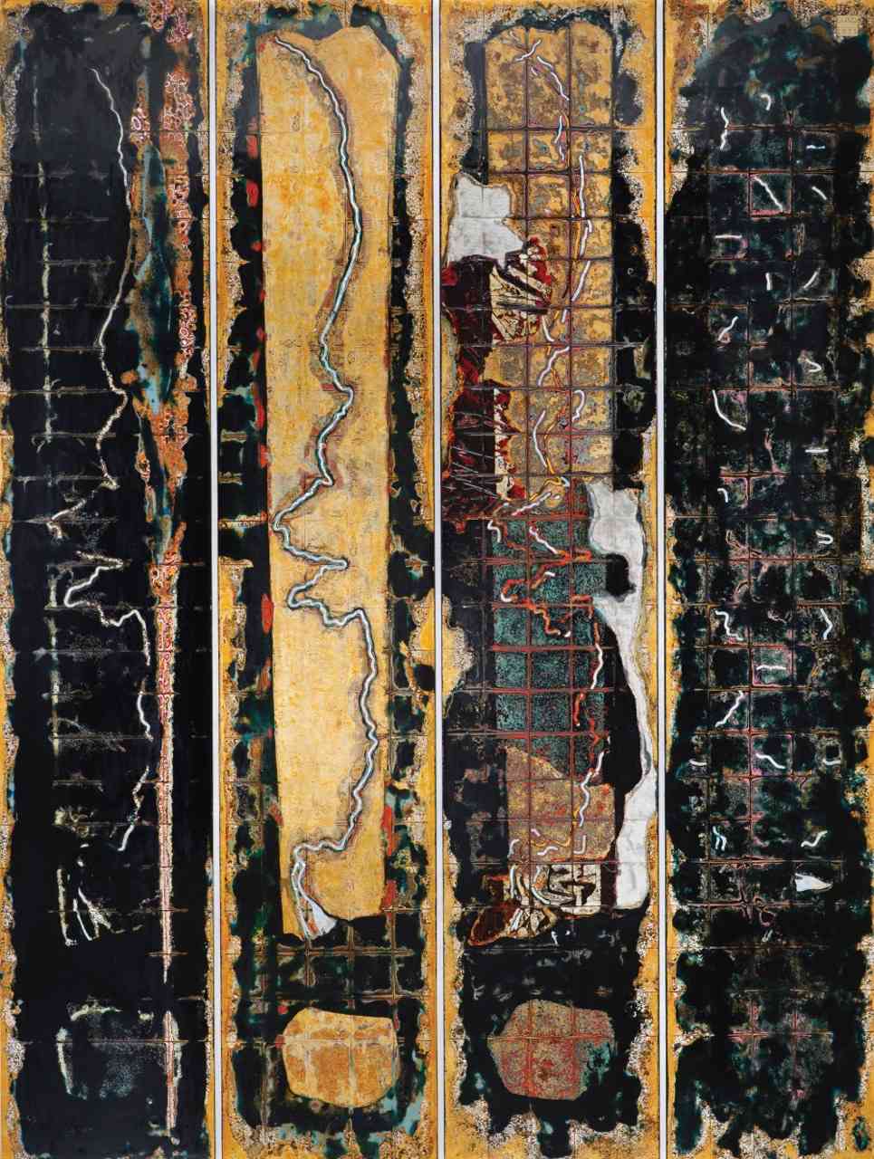The work uses lacquer materials combined with acid erosion techniques on aluminum alloy. The painting depicts the image of a group of workers jostling on the truck, expressing the spirit of solidarity and hidden corners in the journey of making a living of immigrants in the midst of urbanization.