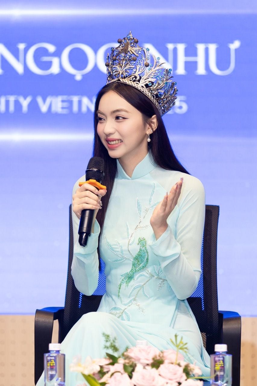 After being crowned, Hoang Ngoc Nhu returned to school with a simple and approachable image. At the exchange, she spent a lot of time answering students' questions, from the secret to maintaining a confident demeanor to balancing studying and social activities. There is no formula, the important thing is to believe in yourself, she said.