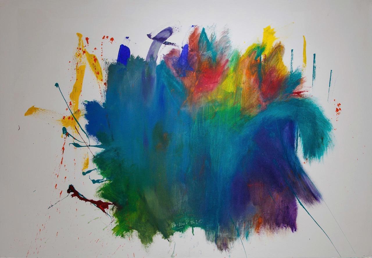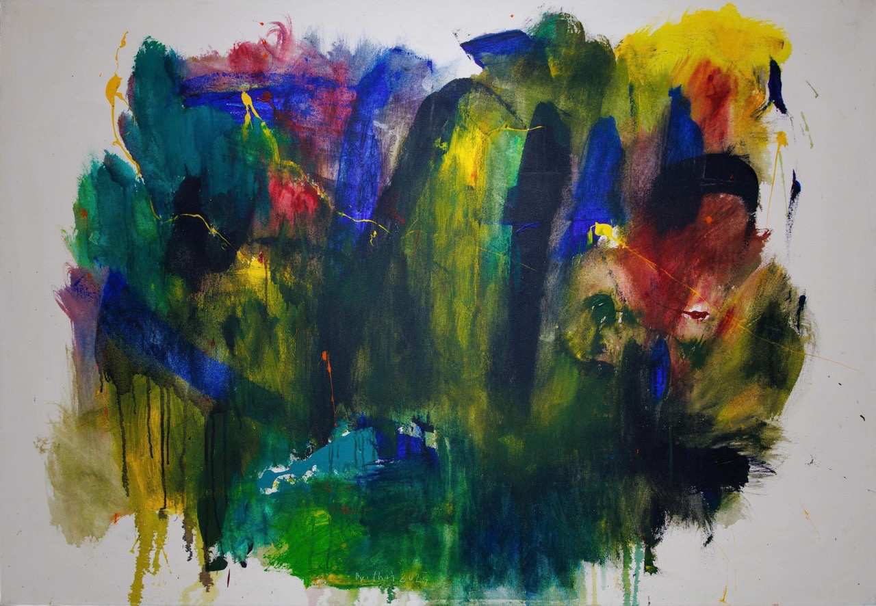 Visually, the series of paintings carries Bui Chat's familiar characteristics: thick, bright, chaotic color patches; drawstrings, flowing lines, color stains like unfinished movements. The shape in the painting is both created and leaving itself. If in previous projects like "Cụ tượng" (The Statue), artists sought to concretize emotions, then with "Bảy tám năm" (Eight and Eight Years), the shape itself rewrote its own destiny.