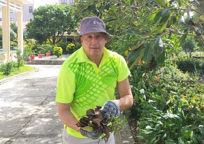 At this morning's program, a foreign charity group called "Willing Hearts" with nearly 15 members from many countries (UK, Russia, Australia, Philippines...), with the support of Vietnamese volunteers, the So of the Shelter of Love cooked 60 servings of Quang noodles for the elderly being cared for here and responded to public service work to contribute to creating a green - clean - beautiful space.