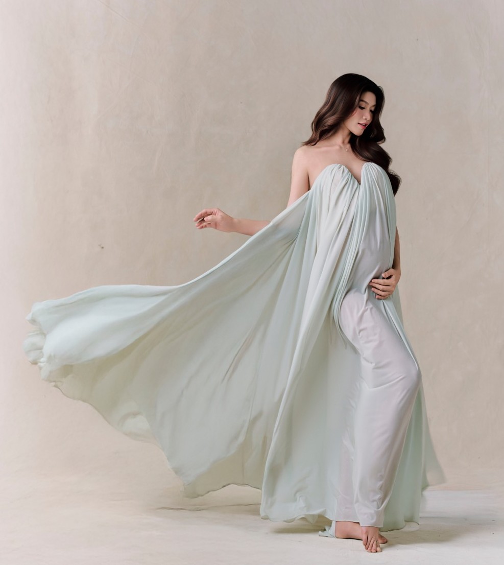 In the series of photos just released, Quynh Chau chose an evening gown with a tight-fitting design, highlighting the figure of a pregnant woman. Although she has entered the last weeks of pregnancy, the runner-up still maintains a fresh appearance, radiant skin and luxurious demeanor.