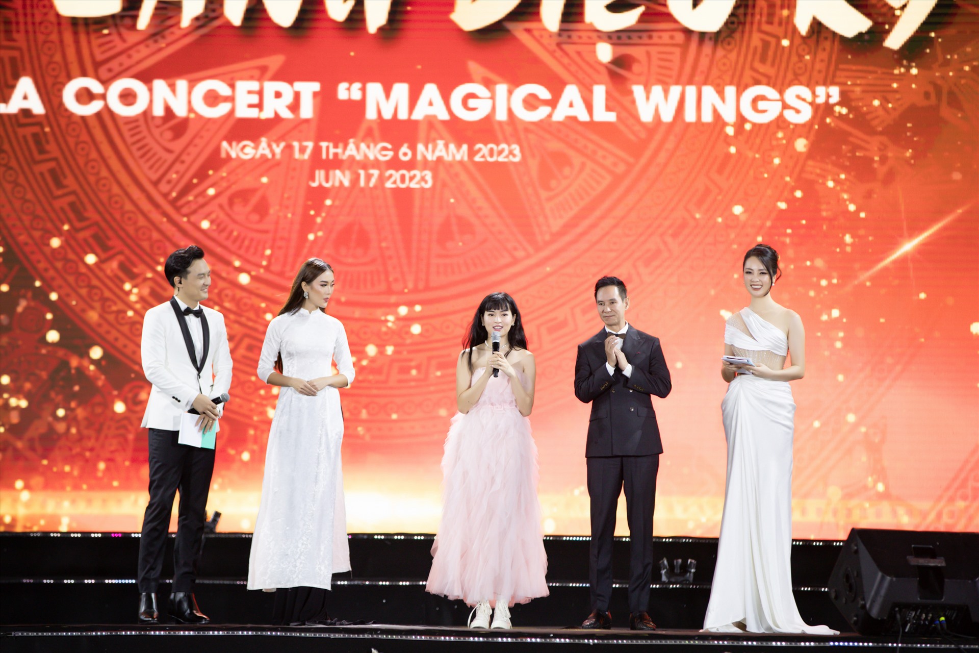 Đến chương trình Liên kết phát triển thương hiệu du lịch Việt Nam qua điện ảnh năm 2023, Khánh Vân nổi bật với bộ váy hồng dịu dàng cùng lối trang điểm tự nhiên, tôn lên vẻ đẹp trong trẻo và ngọt ngào. Dù đã lâu không lộ diện công khai, nhưng người đẹp vẫn tự tin trước ống kính truyền thông.
