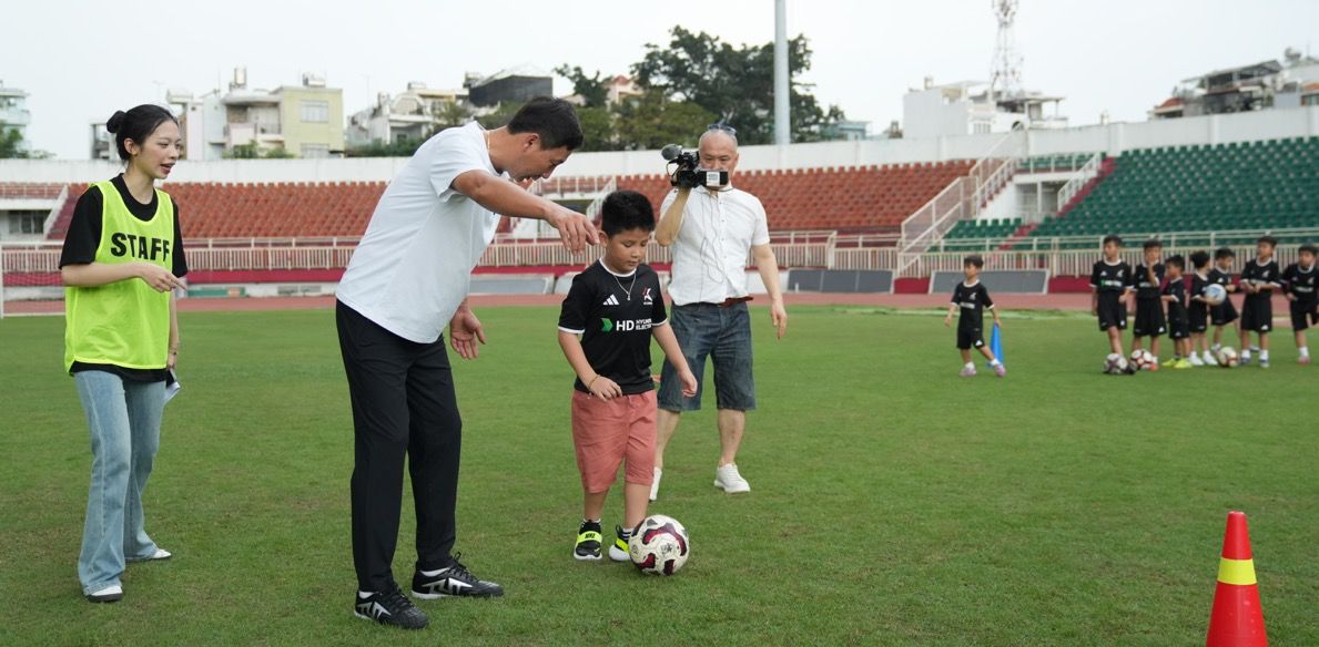 Head coach of the Vietnamese national team Kim Sang Sik wholeheartedly teaches young players to compete.