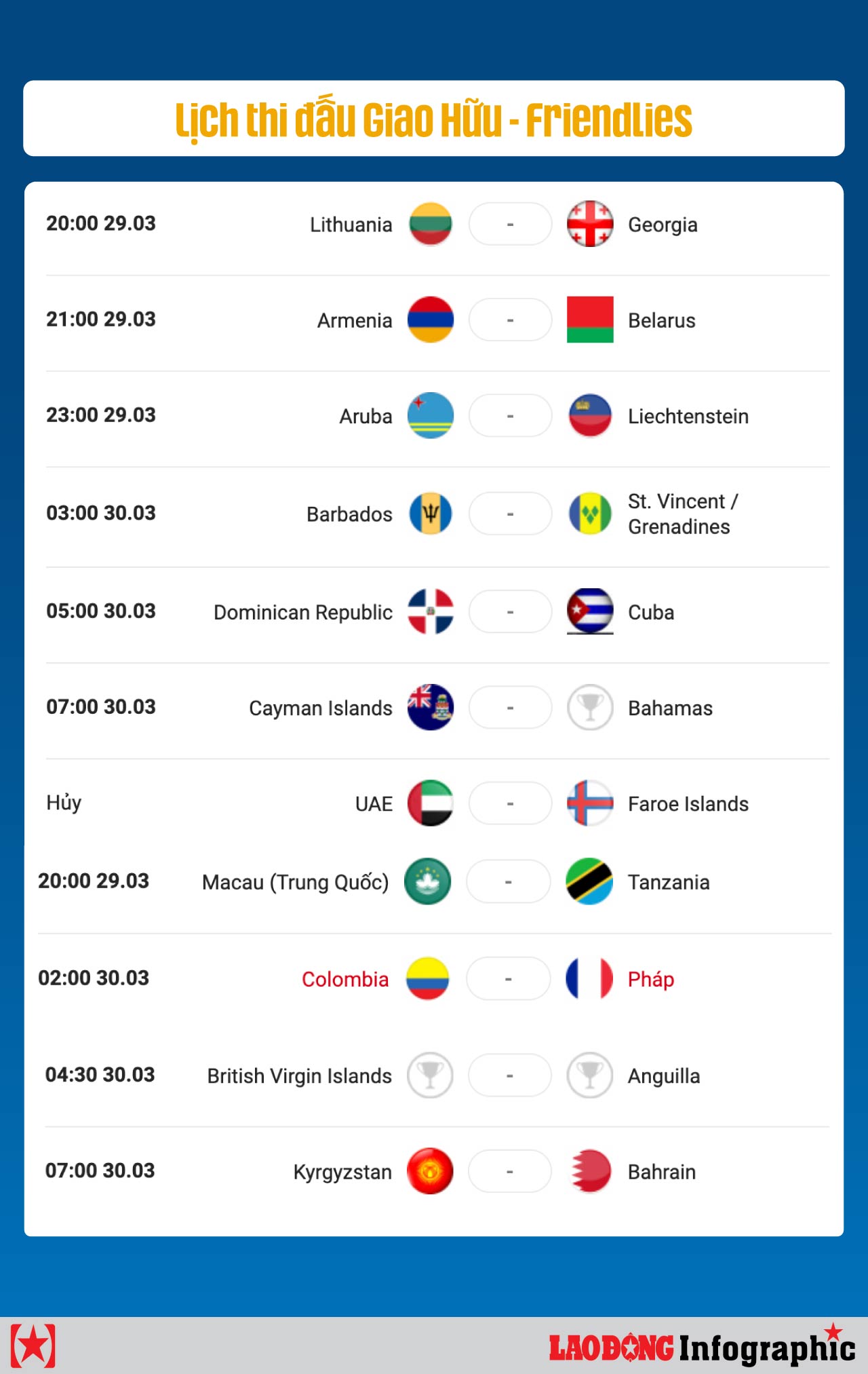 Update on exciting friendly football schedules of many national teams around the world tonight and early tomorrow morning, March 30, 2026.