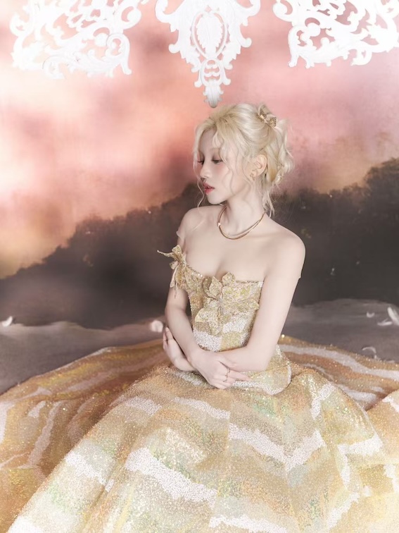 The dress cost 90 million VND, debuted at the brand's Tradeshow in Shanghai, China on March 26 and was immediately chosen by the female idol's team for this special appearance.