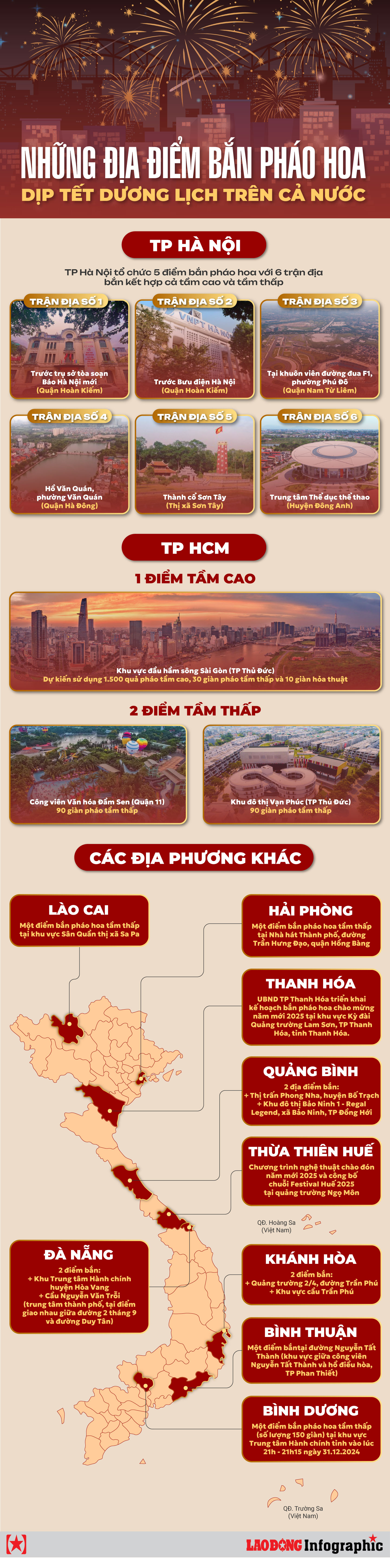 Many provinces and cities across the country will organize fireworks displays at 0:00 - 0:15 on January 1, 2025 to celebrate the New Year.