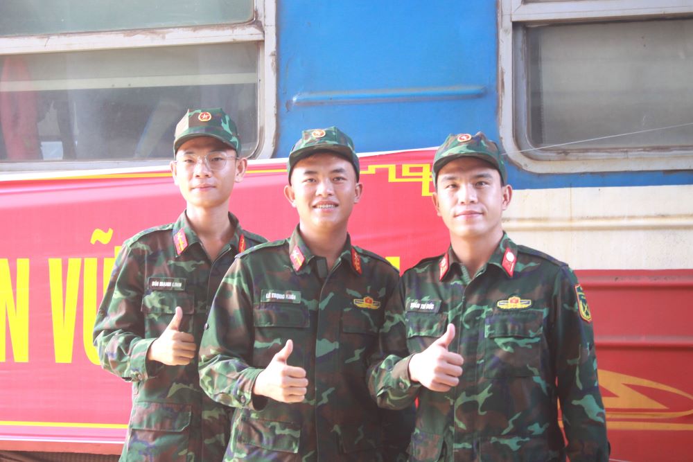 At 2:30 p.m., train SE63 took more than 1,500 officers and soldiers from Hanoi to Da Nang Station. The resounding applause mixed with bright smiles, youth union members and officers and soldiers were present early, eagerly welcoming the officers and soldiers returning after a glorious journey.