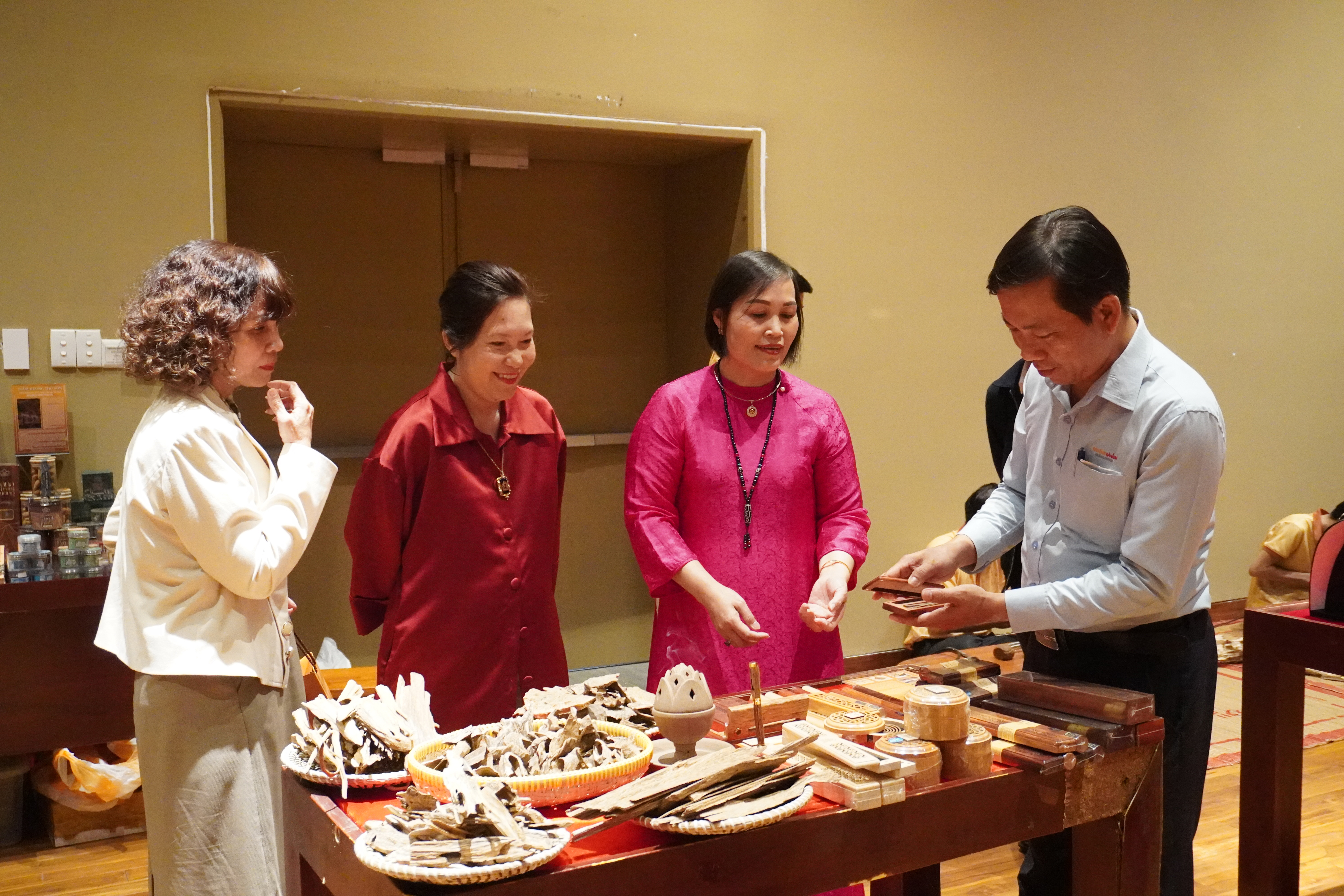 The exhibition introduces about 100 typical artifacts and products made from agarwood, arranged in three main contents including: Landscape agarwood - Quintessence of heaven and earth; Agarwood art; Agarwood - From spirit to life. Artifacts help the public access agarwood not only in material value but also in cultural and spiritual depth.