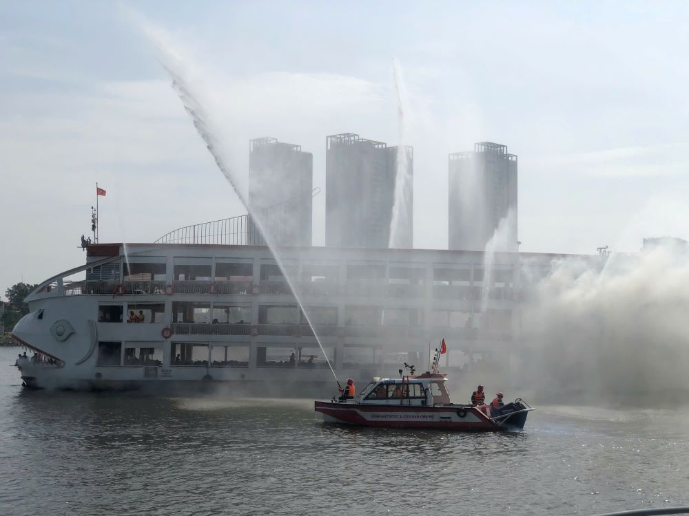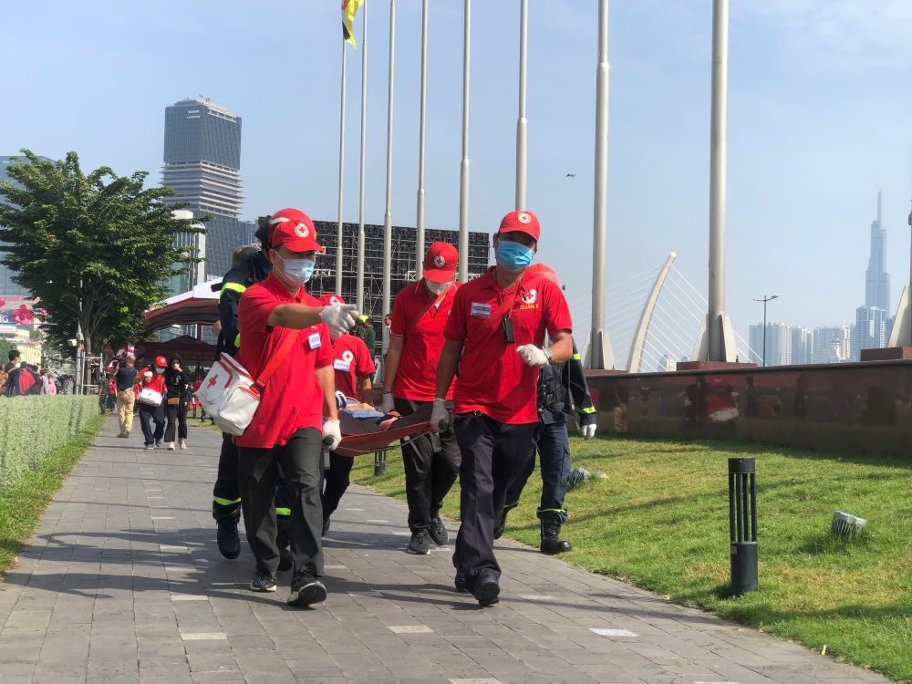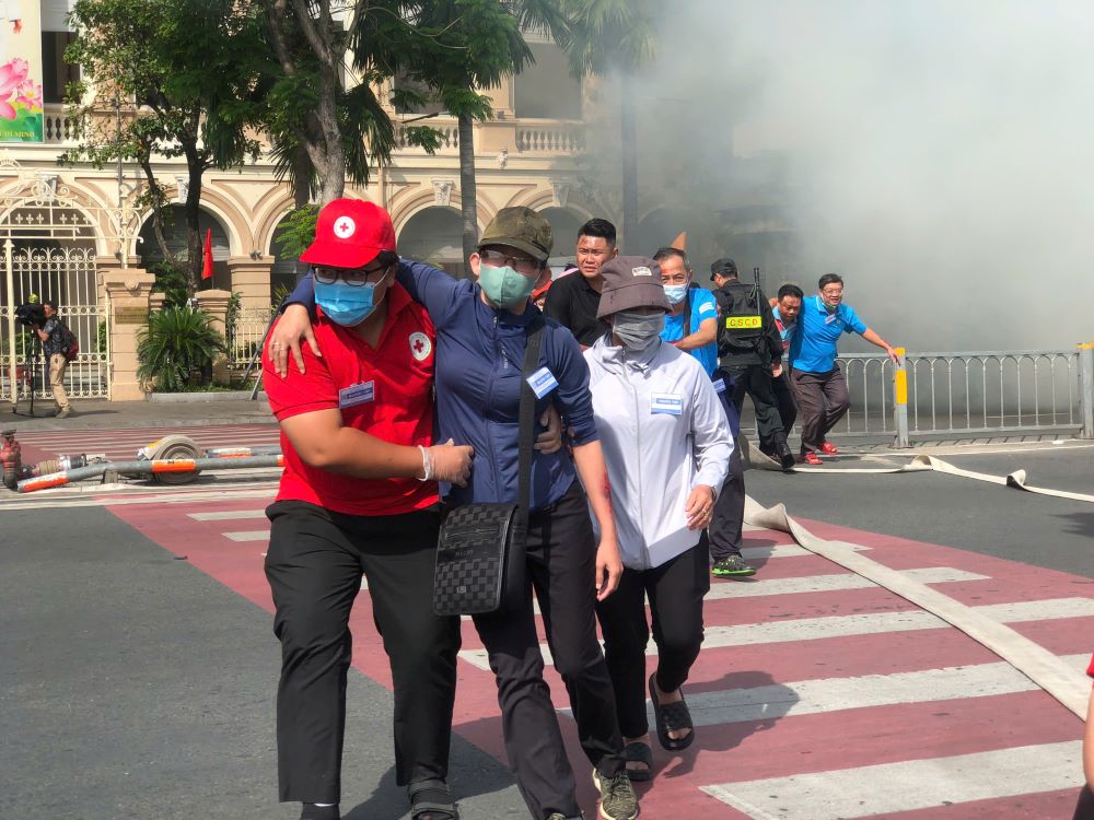 The drill was conducted in the city center, including Nguyen Hue walking street, Bach Dang wharf park and wharf area No. 3 on the Saigon River.