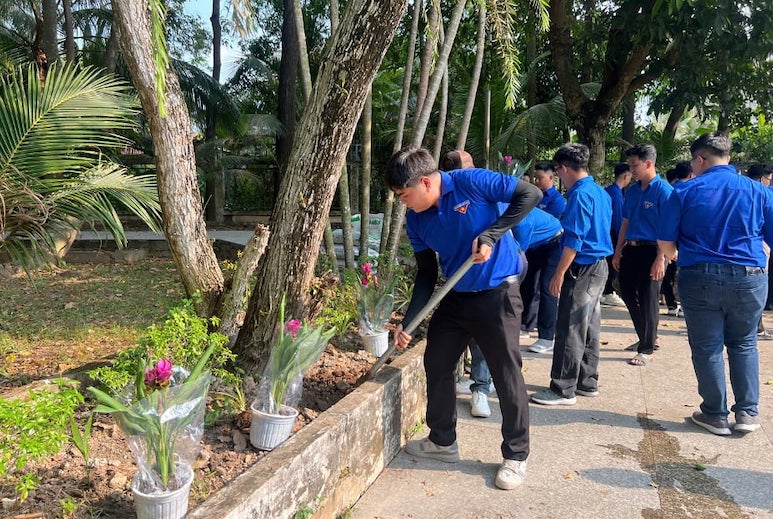 In parallel with traditional education activities, youth union members have planted 100 trees at the memorial area, contributing to improving the landscape and spreading the message of environmental protection.
