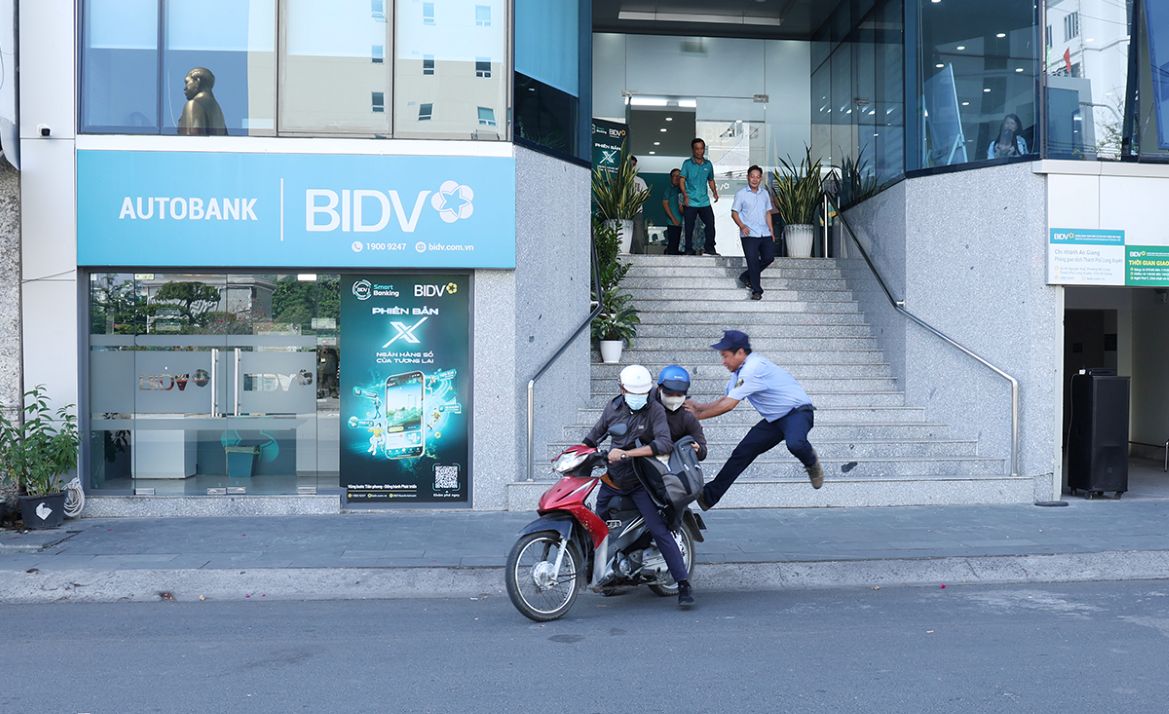 Property robbery prevention drill at bank in Long Xuyen