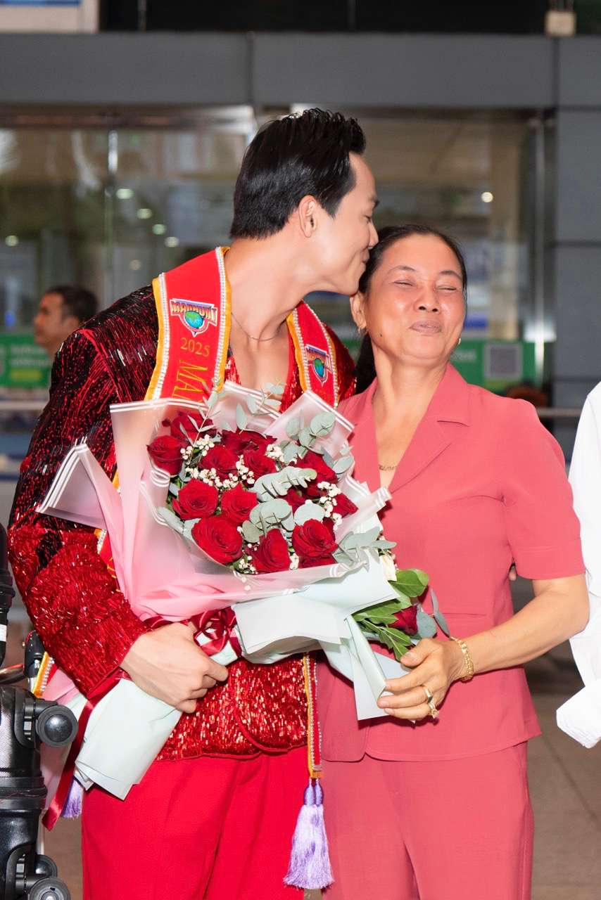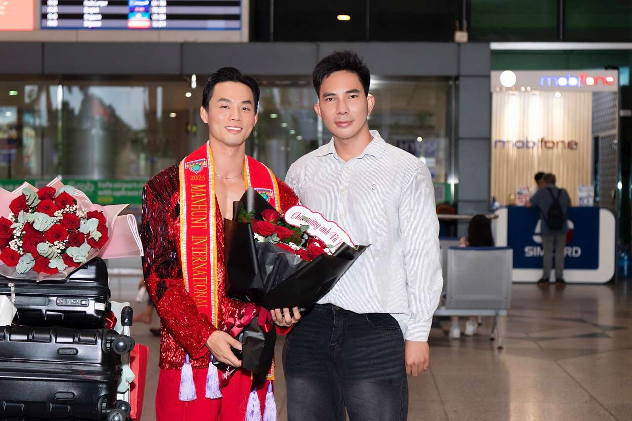 Model Nguyen Vu Linh returned home on the evening of June 12, after more than 10 days of participating in Manhunt International 2025. Accompanying him was Mr. Chu Tan Van - National Director of the contest.
