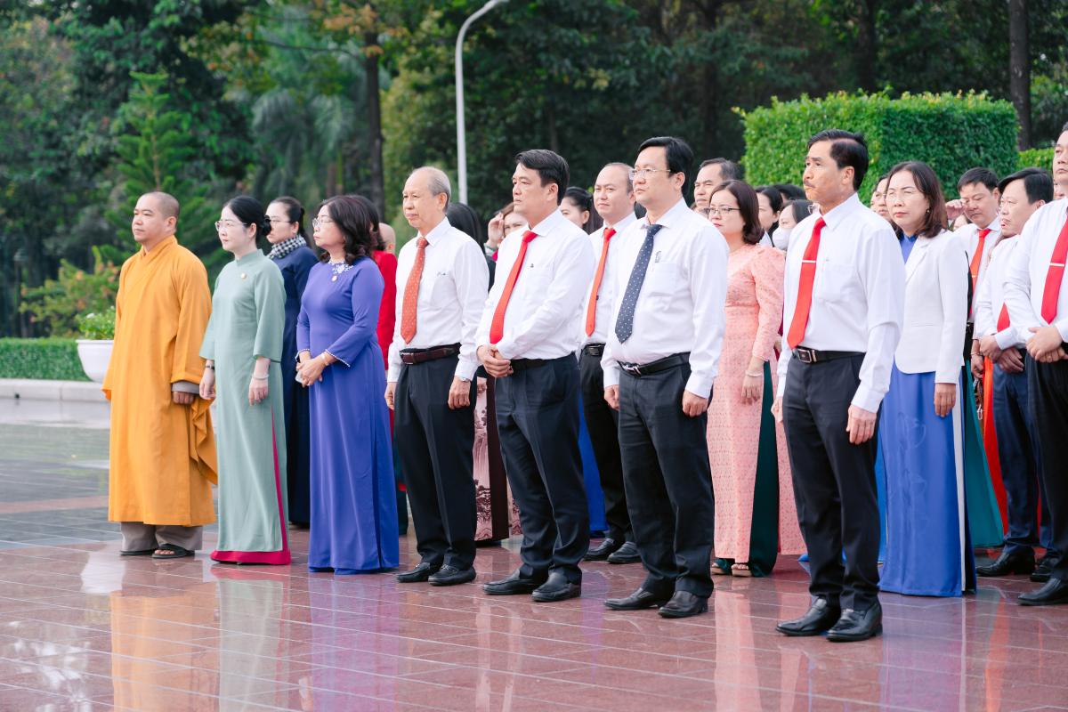 In the old Binh Duong province, Mr. Phan Hong An, Vice Chairman of the Vietnam Fatherland Front Committee of Ho Chi Minh City, led the delegation to visit the Binh Duong Martyrs' Cemetery.
