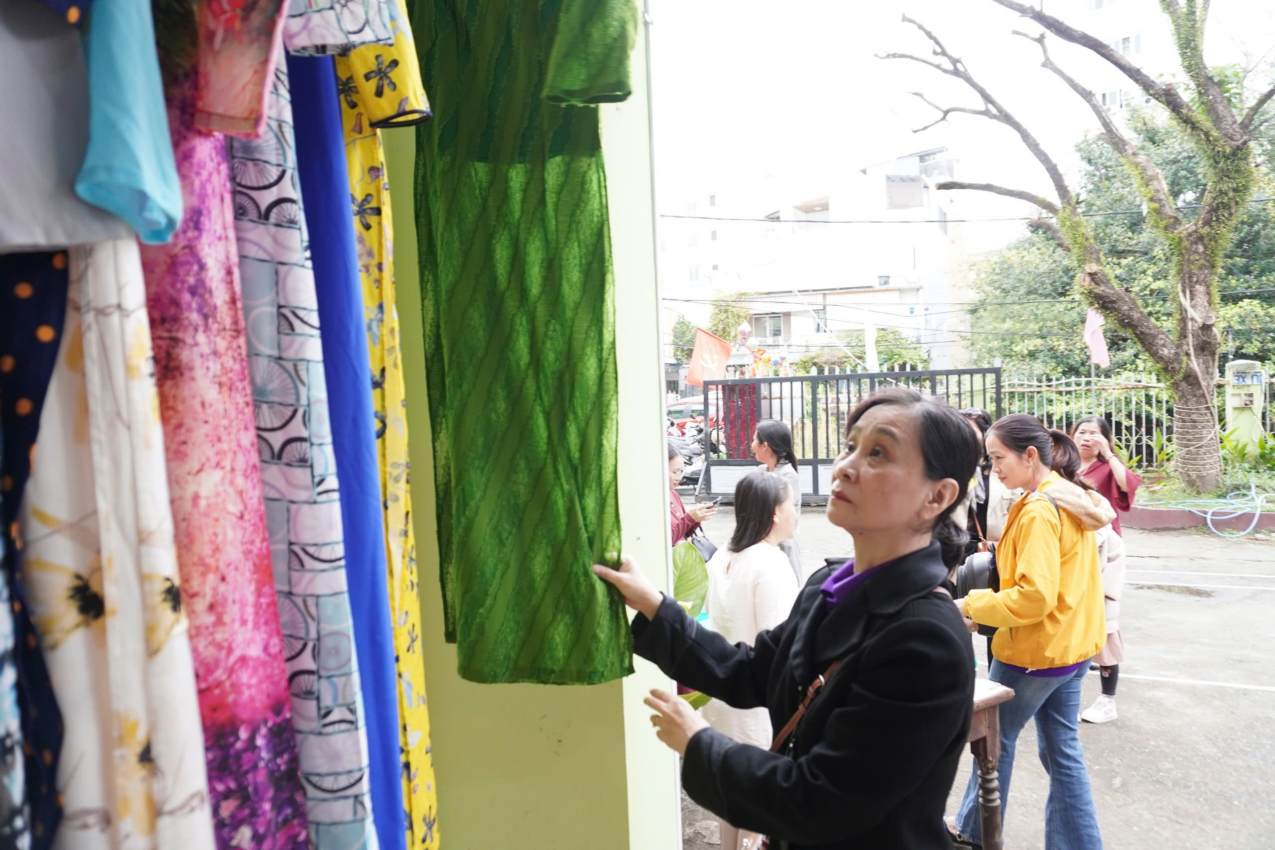 From January 24-25, at the headquarters of the Vietnam Fatherland Front Committee (VFF), Hai Chau ward (Da Nang City) was more bustling than usual. Without a large stage, no elaborate banners, but from early morning, many women, low-income workers and students came to a special market, where each ao dai was only sold for 10,000 VND.