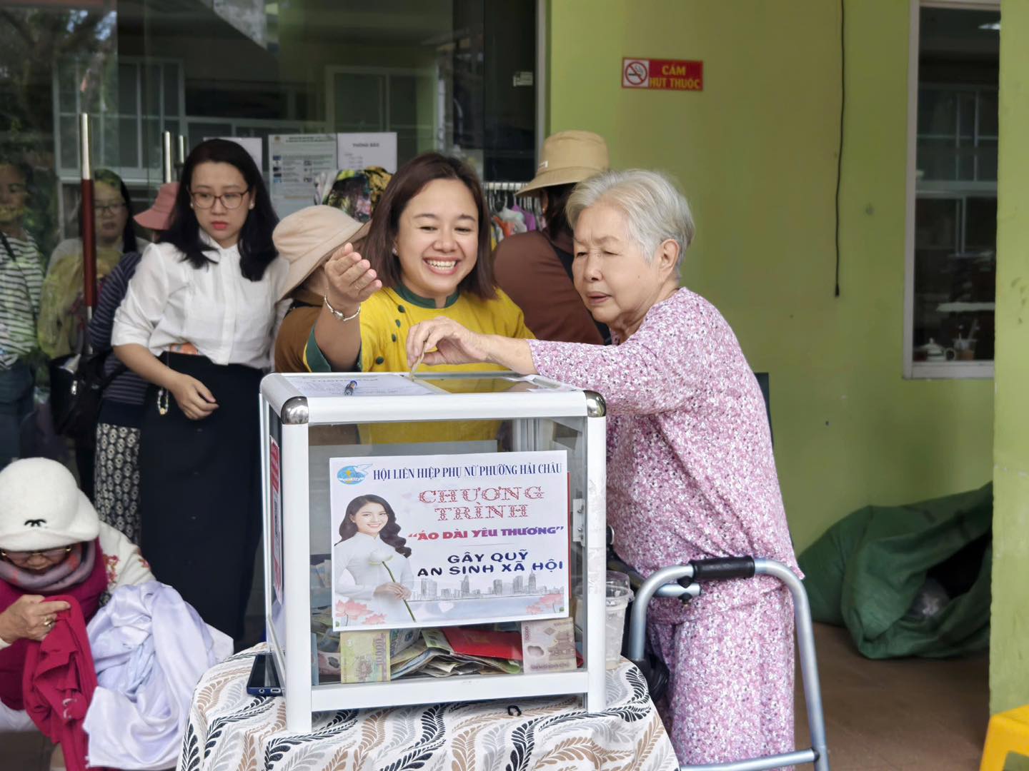 According to the Hai Chau Ward Women's Union, each ao dai priced at 10,000 VND is symbolic, aiming to create respect for the gift, and at the same time help many people have the opportunity to participate.