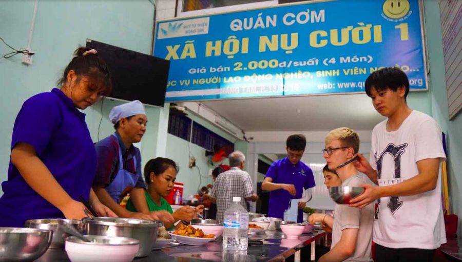 In Ho Chi Minh City, it is not difficult to see signs "free tire pumping", "0-dong meal", "0-dong bread stall"... present on many streets, as vivid proof of kindness still silently spreading in urban life.