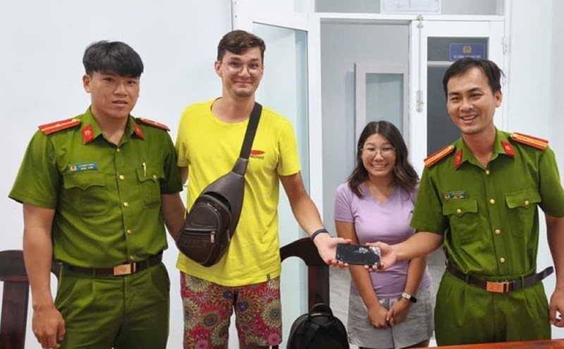 Lam Dong - 2 Russian tourists were moved when the commune police helped find the phone that had fallen off at midnight.