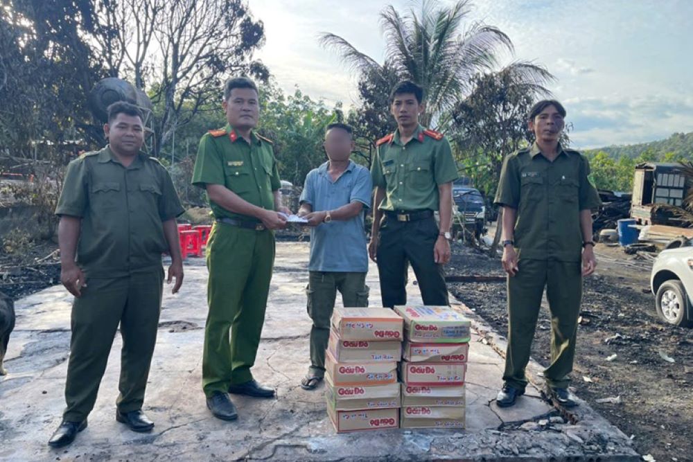 Commune police in Lam Dong voluntarily contribute 1 day's salary to support households whose houses were burned down