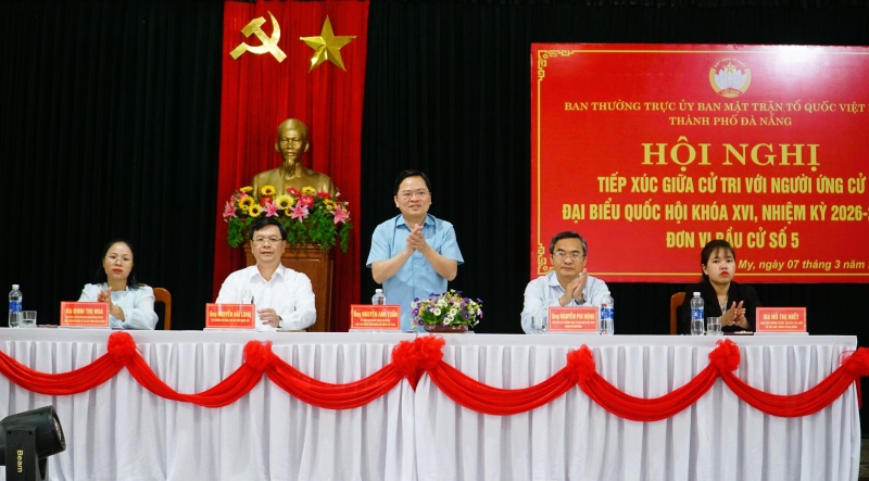 Da Nang - Candidates of the 16th National Assembly Deputies of constituency No. 5 participate in an online voter contact conference connecting many communes and wards.