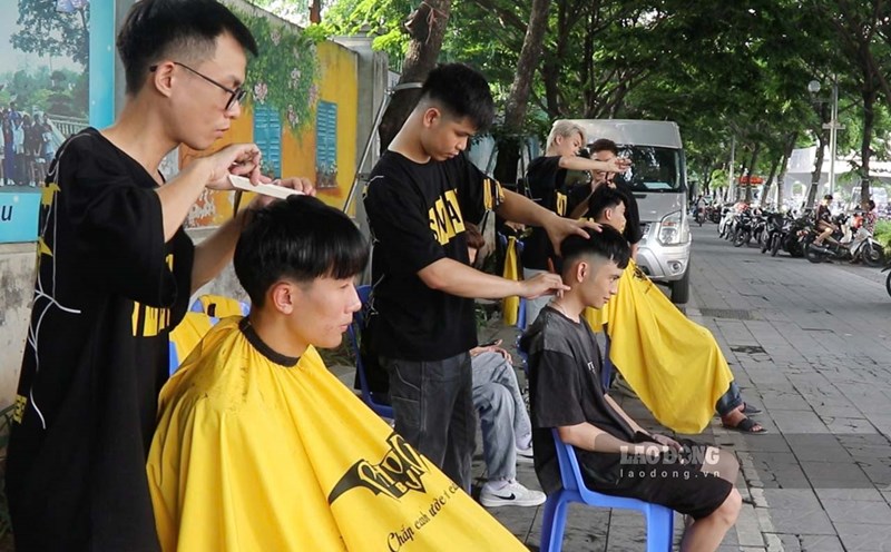 Hanoi - For a long time, people in Hanoi have not been unfamiliar with the image of a group of young people getting their hair cut for free on the sidewalks on some streets in the heart of the capital.