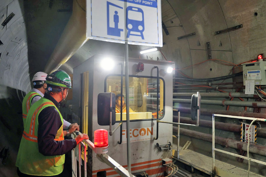 During the Metro tunnel drilling machine, a transportation system is used to supply materials, bringing soil and rock out, helping the tunneling takes place smoothly.