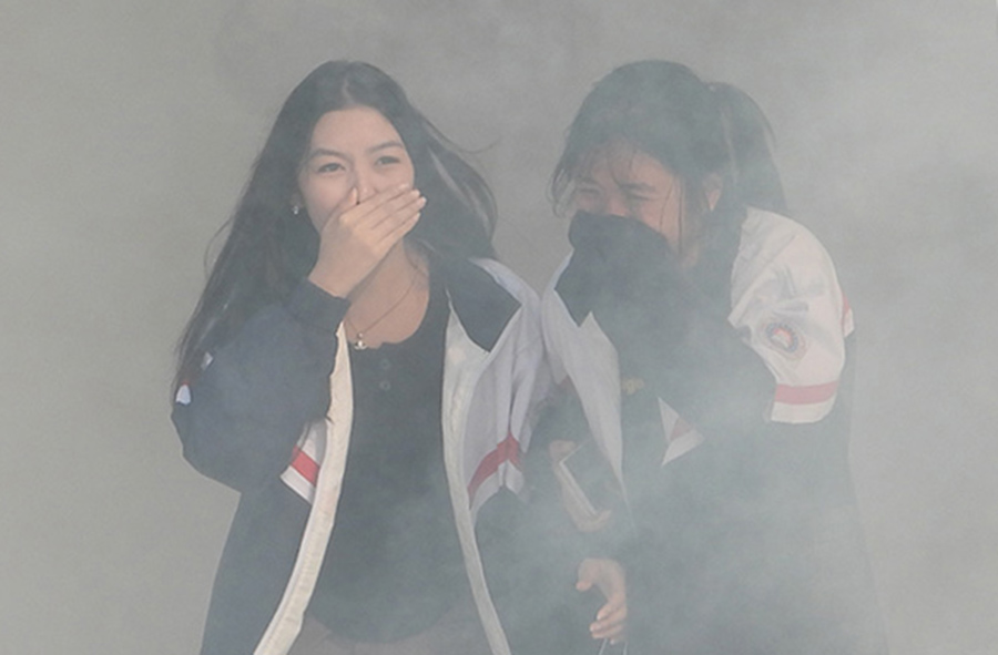 Nearly 1,000 ethnic minority students have just experienced a simulated situation of a major fire and were instructed in escape skills.