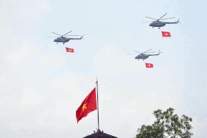 Hanoi - On August 28, the helicopter squadron carrying the Party flag, the Fatherland flag, fighter jets continued to practice for the A80 parade event.