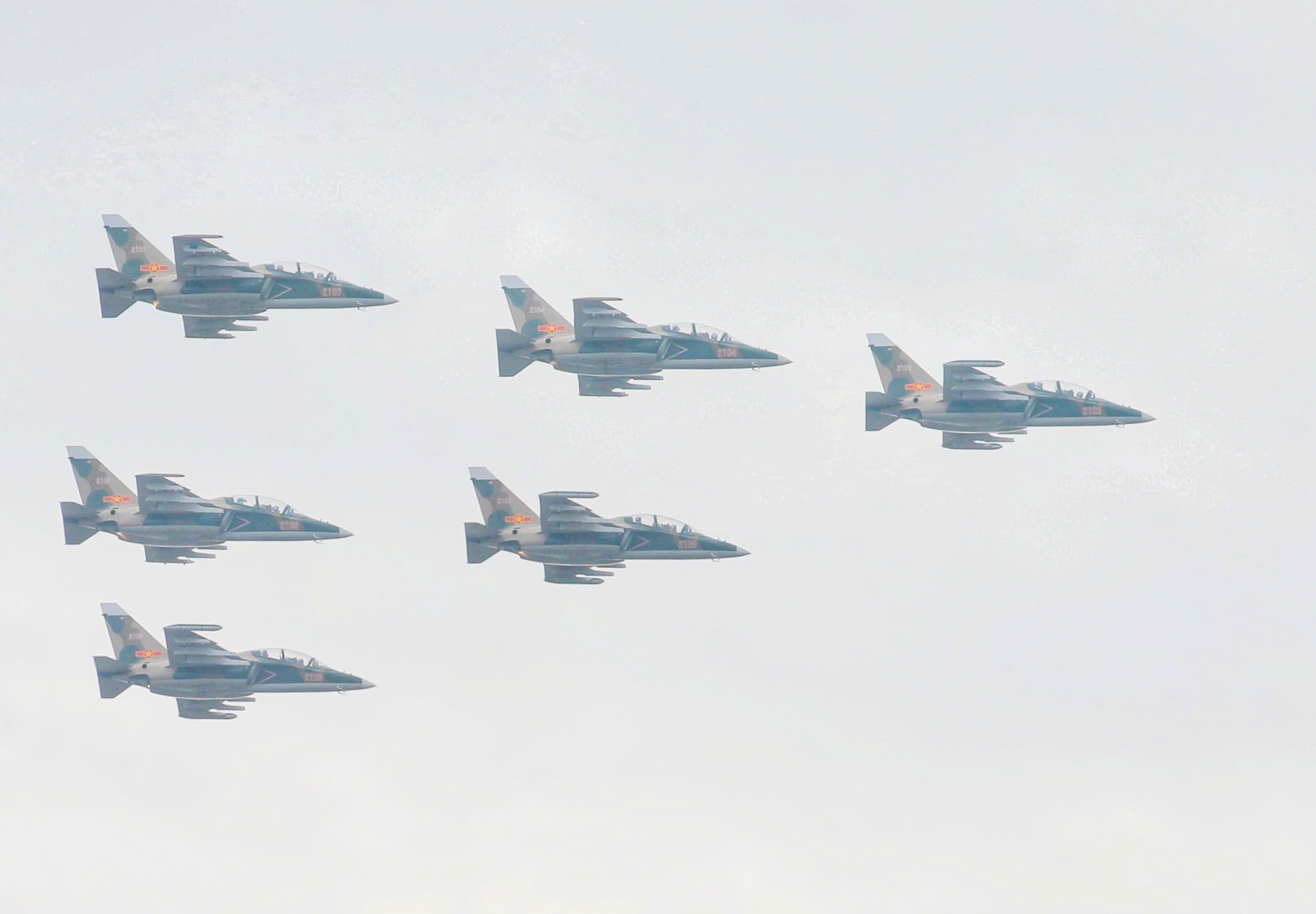 Helicopters and fighters continue to practice flying in the sky of Hanoi