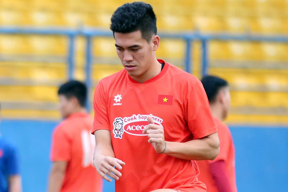 Striker Nguyen Tien Linh went to the training ground with the Vietnam national team with a bang appearing on his knee.