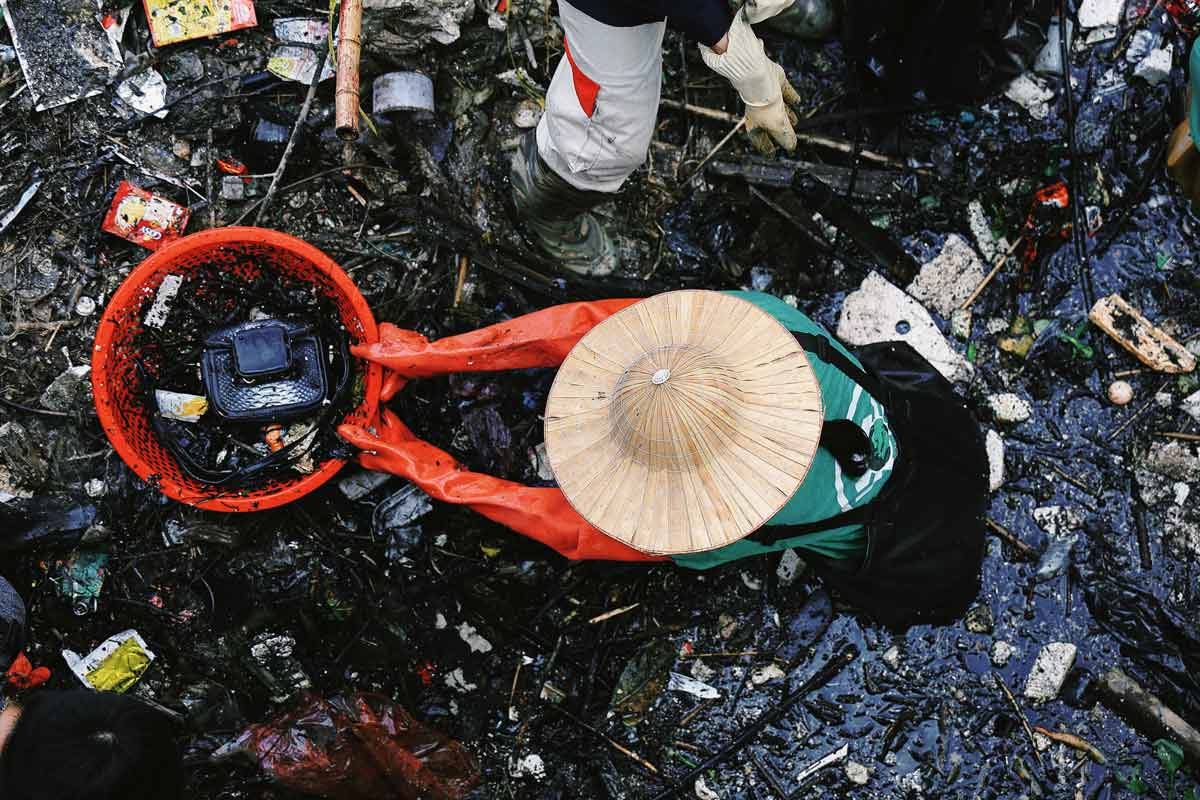 A group of young people soaked for hours, salvaged more than 5 tons of trash to rescue Nhue River