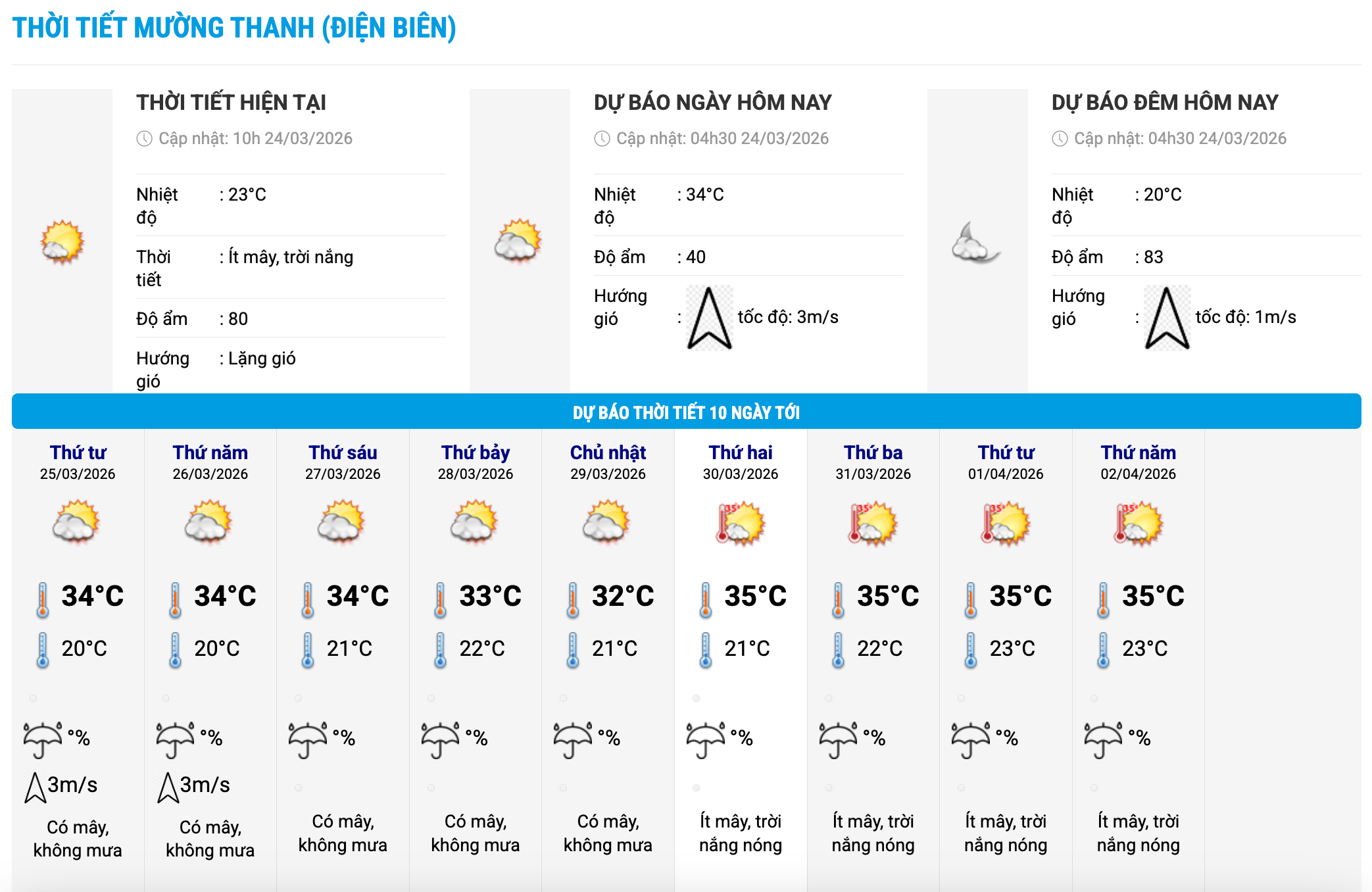 The Northern region and the area from Thanh Hoa to Hue city from March 24 to March 27, it is forecast to have light rain in some places, early morning fog and light fog scattered, sunny in the afternoon.