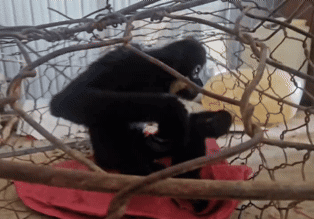 Controlling two long-tailed monkeys disturbing people's houses in Lam Dong