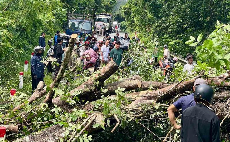 Lam Dong - A large tree fell, blocking National Highway 55 through La Nguu Pass, causing vehicles to be jammed for nearly an hour.