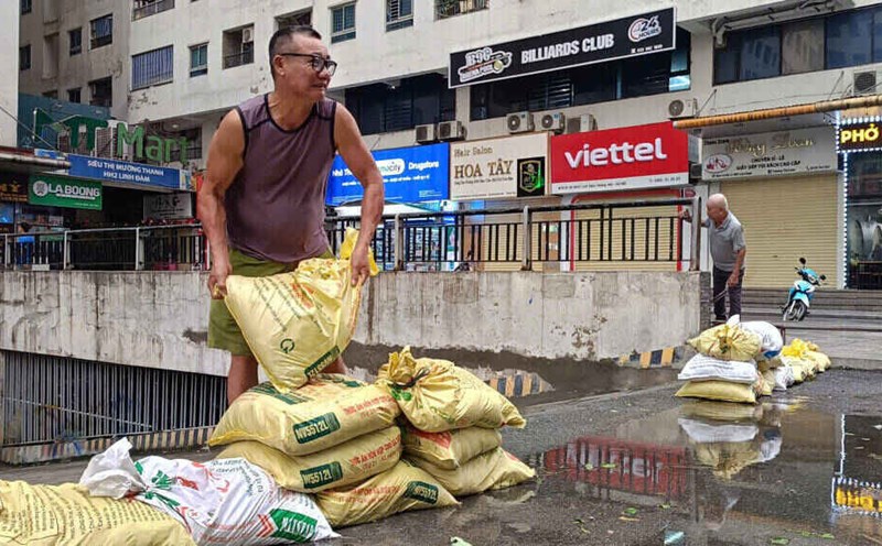 Hanoi residents urgently cut down trees, cover their houses, reinforce their basements, and place sandbags to prevent storms. The streets were unusually quiet before the storm made landfall.