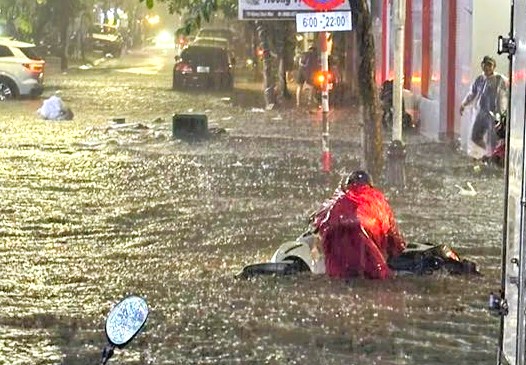 Dong Nai - On September 22, prolonged heavy rain caused many roads to be deeply flooded, water flooded, traffic paralyzed, and people's lives were disrupted.