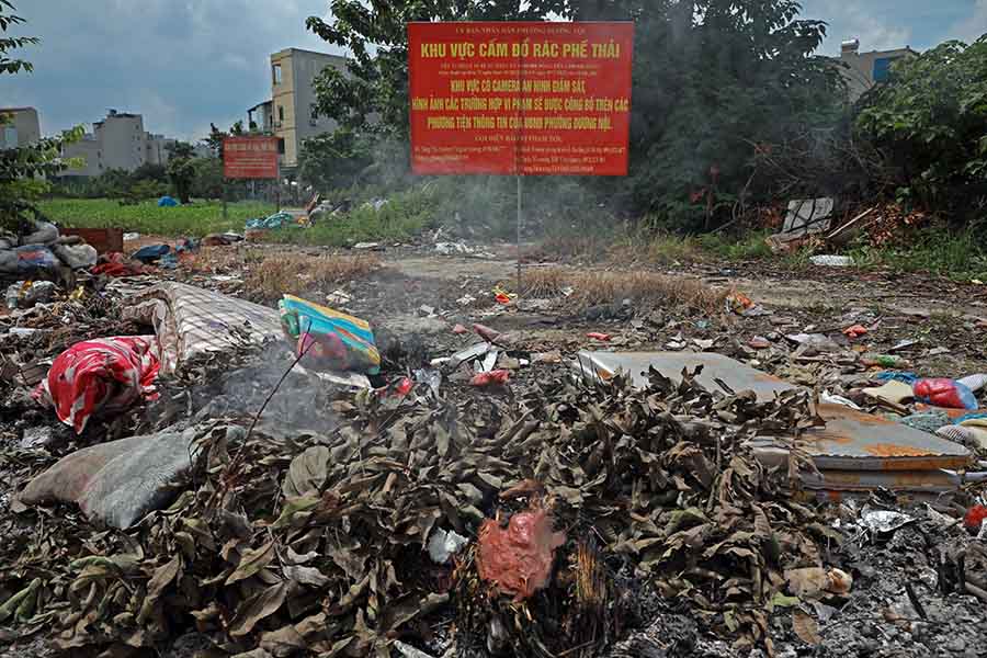 Garbage is flooded at the place where there are signs prohibiting dumping, surveillance cameras