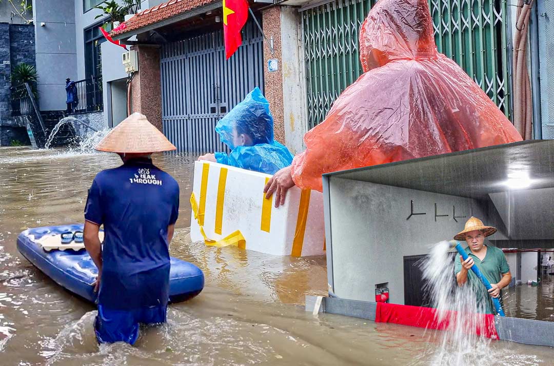 Hanoi - Due to the impact of storm No. 5 Kajiki, Hanoi had heavy rain, causing many streets to be deeply flooded, forcing people to wake up early to reinforce and cover their property.