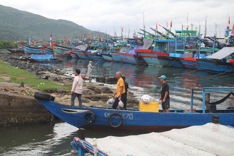 Fishermen rush to shore to avoid storm No. 5 Kajiki after the sea ban in Da Nang