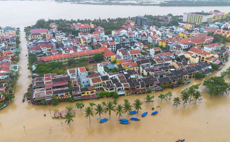 Overview of Hoi An Ancient Urban Area, Da Nang submerged in water