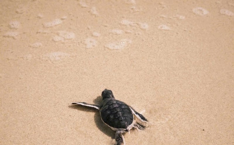 The moment the baby turtle flock returned to the ocean after being born on Phu Quy island