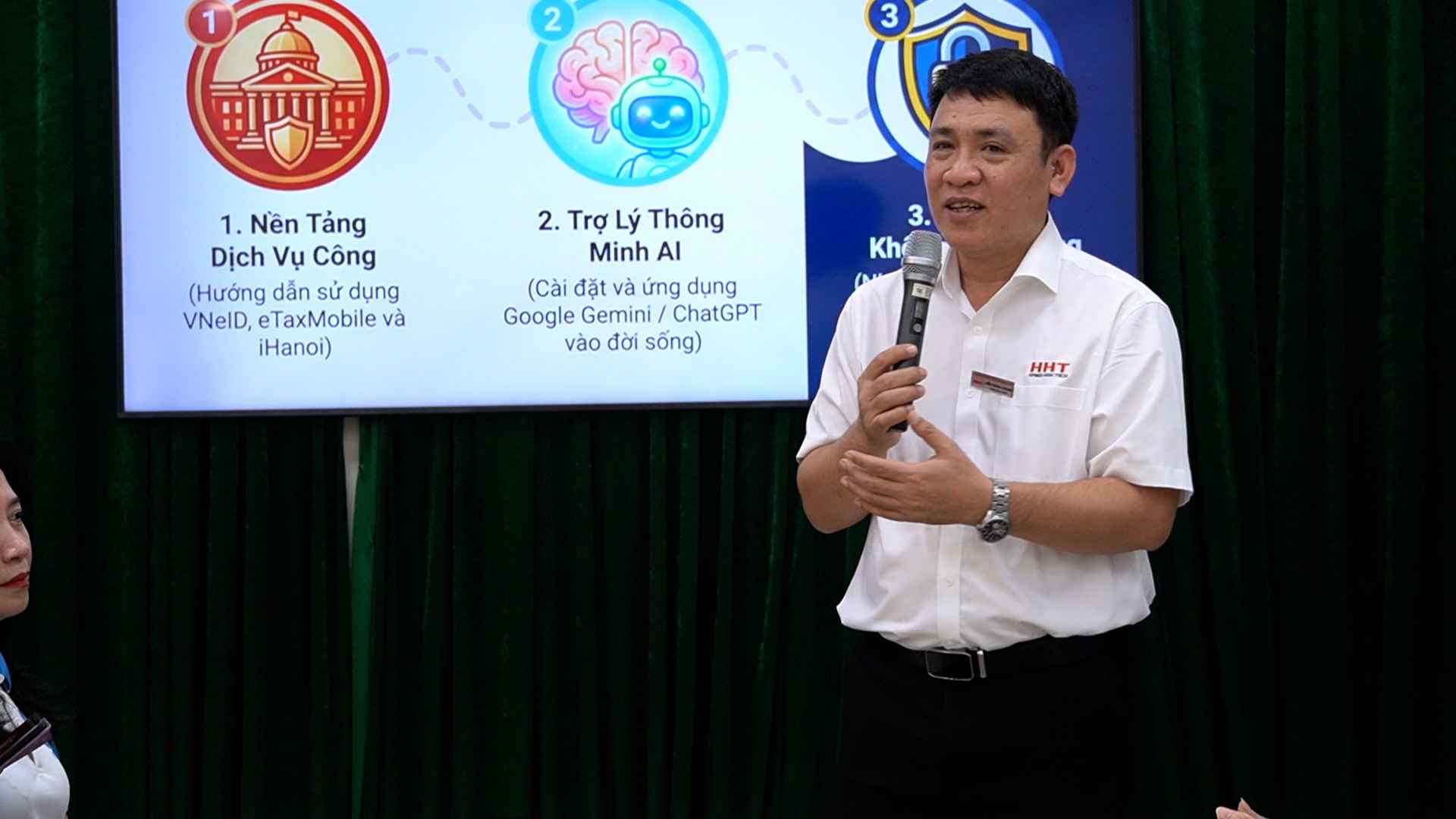 Notably, content about artificial intelligence (AI) is also introduced into teaching by teachers as a new skill. Lecturers guide the elderly on how to use AI to support quick information search, ask questions and verify content from many different sources.