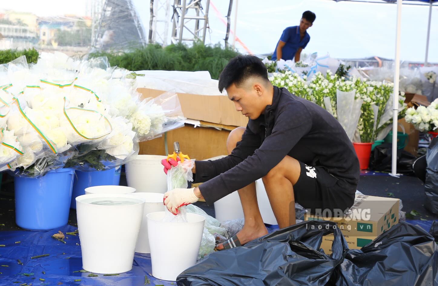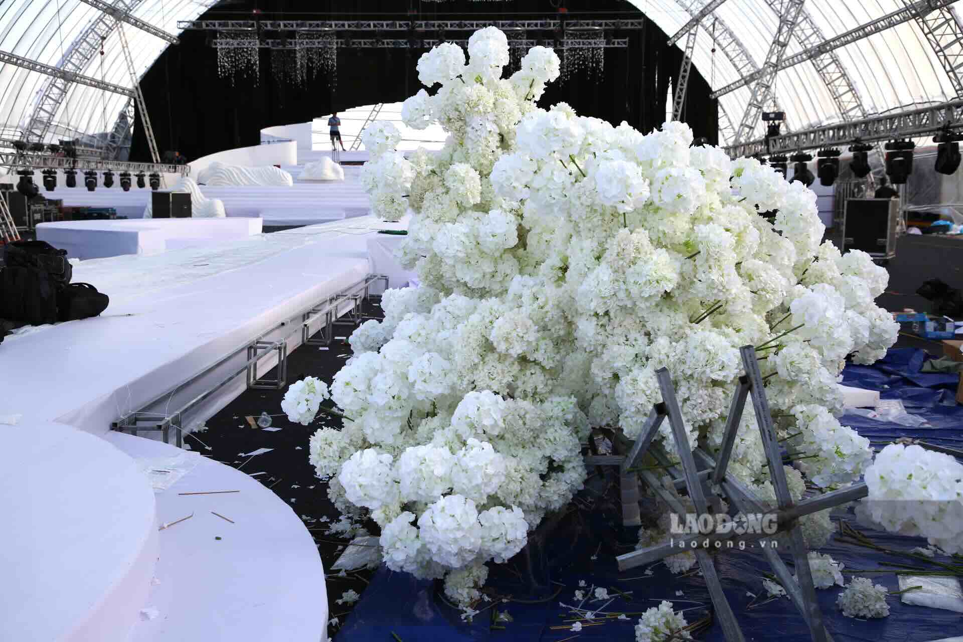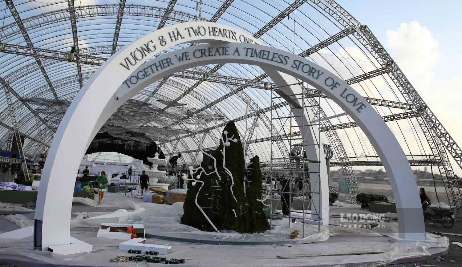 Quang Tri - The wedding tent of young master Son Hai Group and Miss Do Thi Ha is being urgently completed in Nam Cau Dai urban area, on the Nhat Le river.
