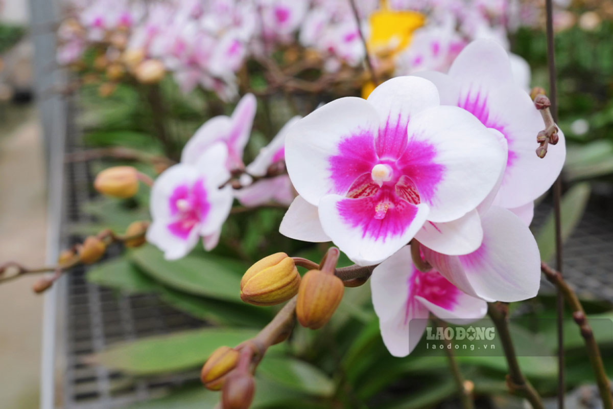 This year's Tet orchid market is diverse in designs, with many new flowers with eye-catching colors and unique names, so it is sought after by many customers.