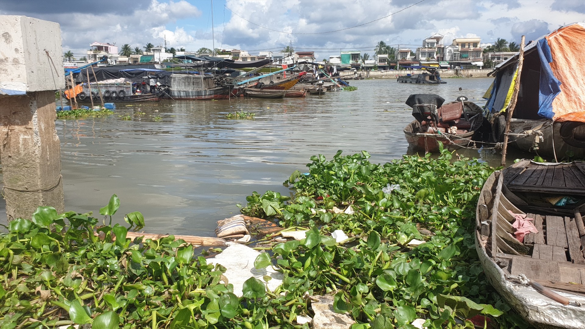 Cần Thơ – Rác thải và lục bình là những thứ đang bủa vây chợ nổi Cái Răng (quận Cái Răng) từ trên bờ xuống dưới nước.