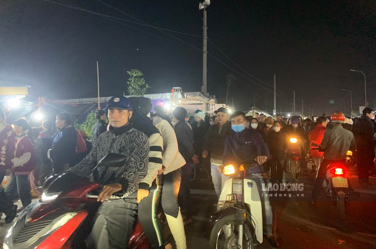 Nam Định - Tối 16.2 (tức mùng 7 tháng Giêng âm lịch) hàng vạn người dân chen chân, cầm áo nối đuôi nhau để vào chợ Viềng (huyện Vụ Bản, tỉnh Nam Định).