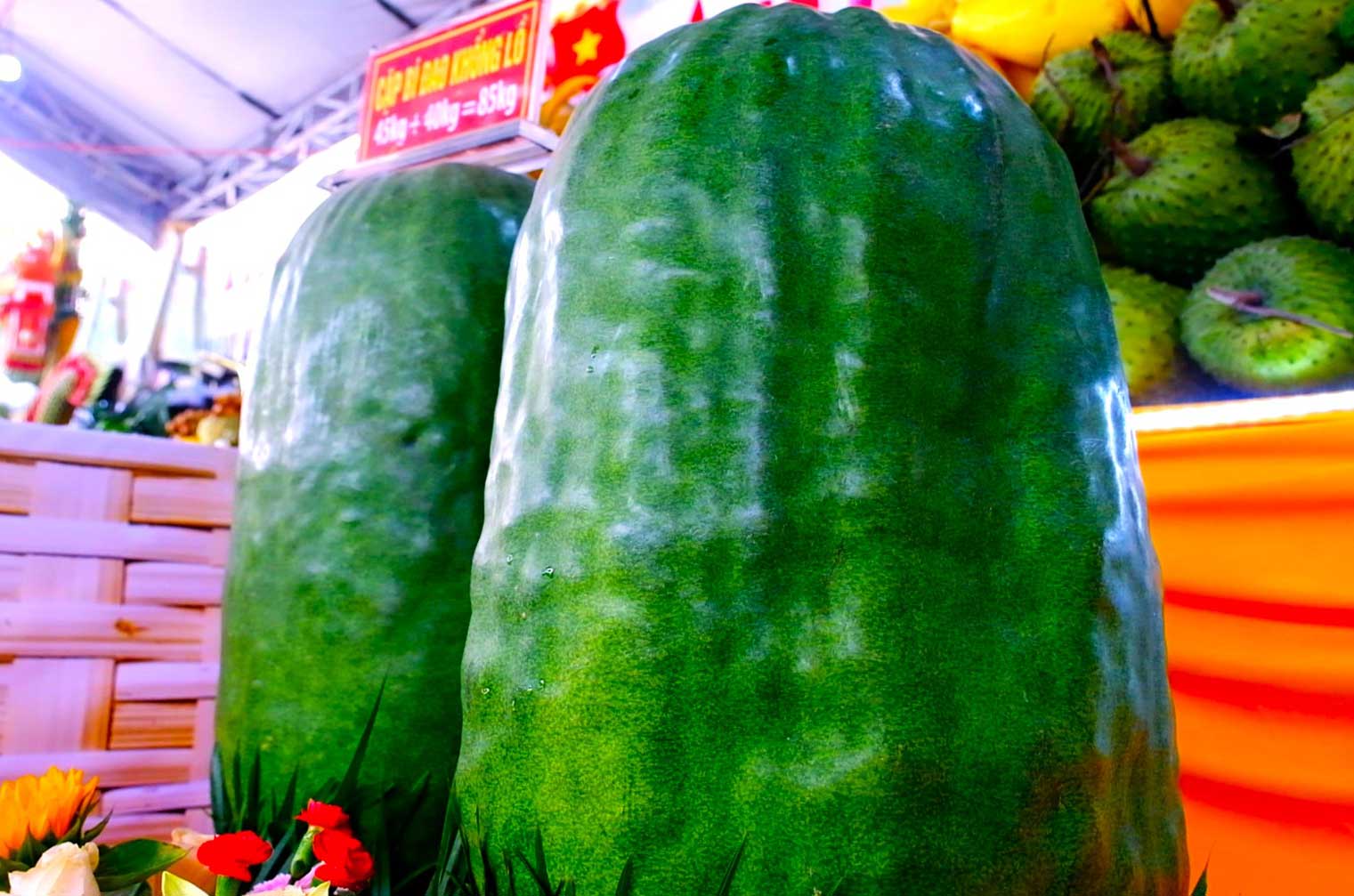 Bí đao, khoai mì khổng lồ, dừa xiêm đột biến,… được người dân mang đến trưng bày tại Ngày hội Vườn trái cây Tân Lộc (quận Thốt Nốt, TP Cần Thơ) năm 2024 đã thu hút sự chú ý của nhiều khách tham quan.