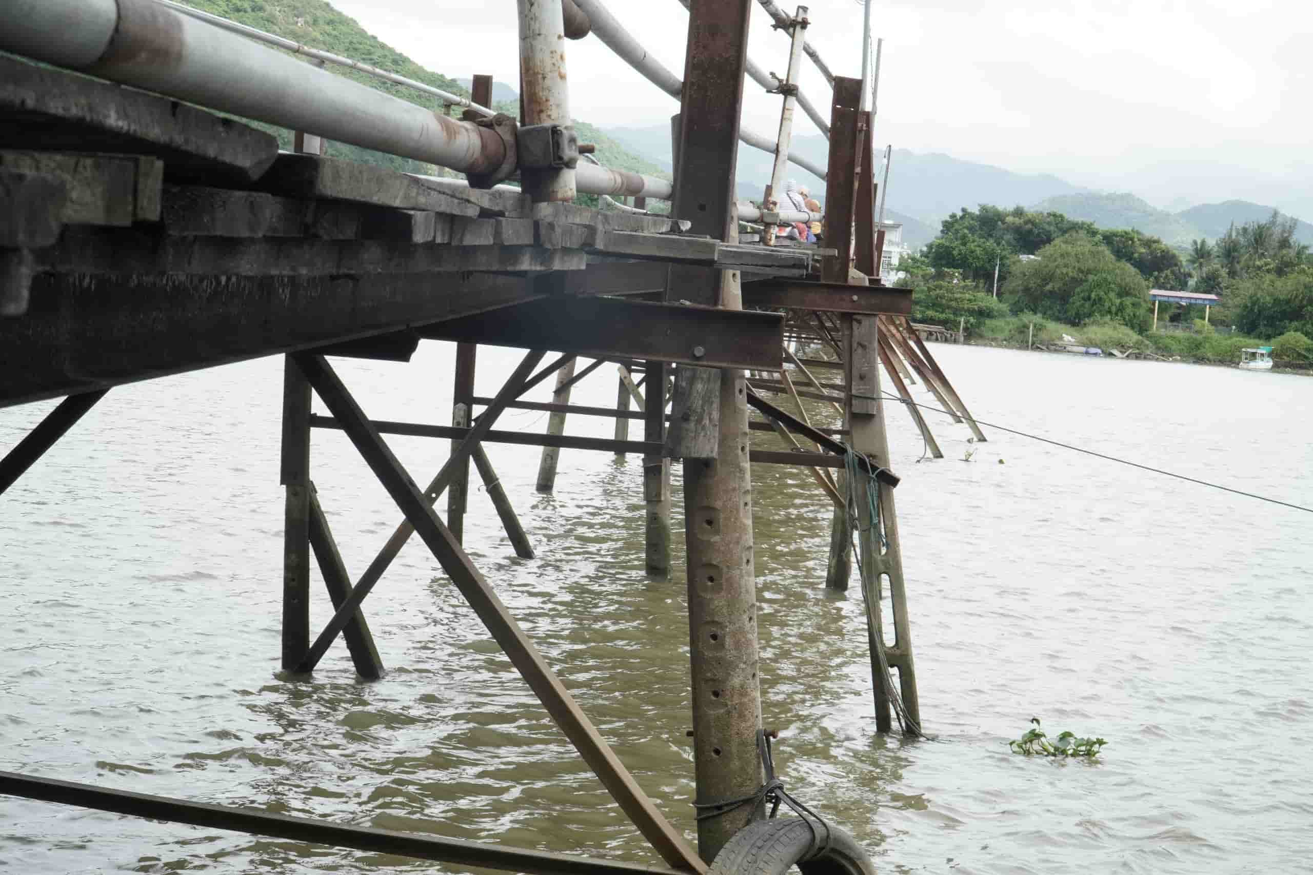 Khánh Hòa - Cầu gỗ Phú Kiểng được người dân xây dựng cách đây hơn 22 năm. Cây cầu xuống cấp trầm trọng bởi mối mọt, hư hỏng nên địa phương dự kiến sẽ xây cầu mới bằng bê tông cốt thép gần 500 tỉ đồng.