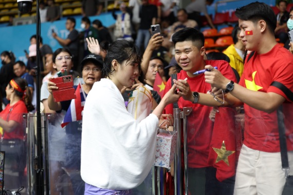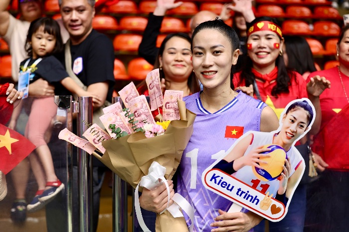 Kieu Trinh, Thanh Thuy and the players of the Vietnam women's volleyball team received special affection from the audience when they won the right to enter the finals of the 33rd SEA Games.
