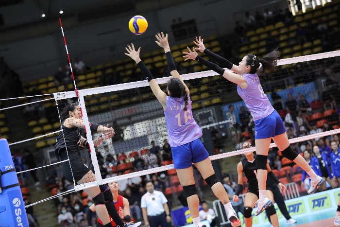 Live match between the Vietnamese women's volleyball team and the Philippines in the semi-finals of the 33rd SEA Games, taking place at 12:30 today (December 14).
